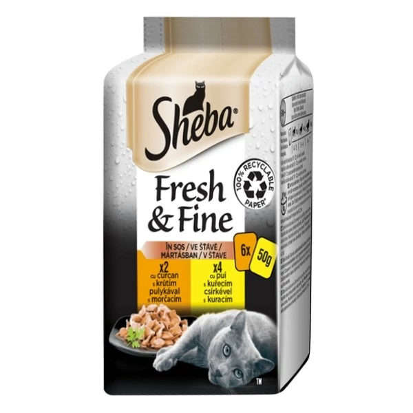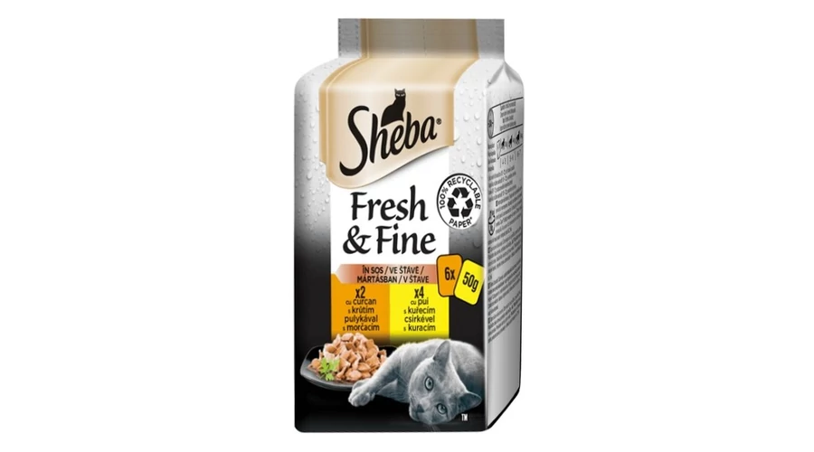 Állateledel alutasakos SHEBA Mini macskáknak szárnyas csirke-pulyka válogatás 6x50g