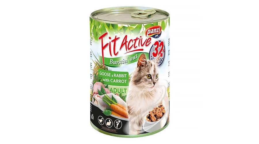 Állateledel konzerv PANZI FitActive felnőtt macskának liba- és nyúlhússal, répával 415 g