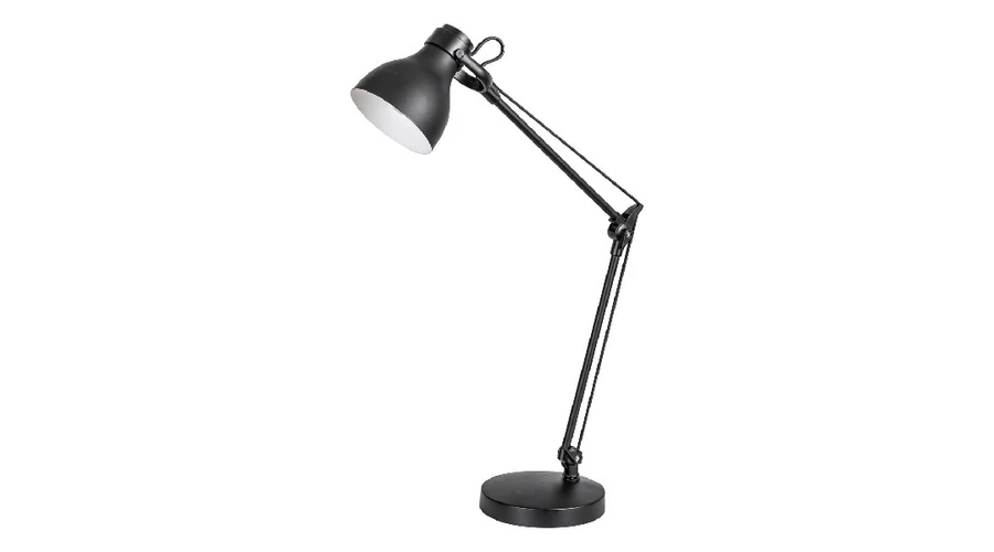 A matt fekete színben, fémből készült letisztult Carter asztali lámpa jó szolgálatot tehet a dolgozószobában vagy iskolás gyermekeink íróasztalán. A fekete színű kábel kiegyensúlyozza a karakteres megjelenést. Sötét színének köszönhetően elsősorban nagyobb fiúk szobájába ajánljuk. A lámpa magassága lehetővé teszi, hogy az olvasáshoz, íráshoz, tanuláshoz elegendően nagy felületet tudjunk hatékonyan bevilágítani. A Carter elhelyezésekor csupán arra kell figyelnünk, hogy a számunkra megfelelő oldalra kerüljön, nehogy kitakarjuk a lámpa fényét. Az asztali lámpa szára hajlítható és feje is mozgatható, így mindig pillanatnyi igényeinknek megfelelően állíthatjuk be a magasságát és a fény beérkezési szögét. Ez a modell egy darab, legfeljebb 11 W teljesítményű, energiatakarékos fényforrással használható, a foglalat típusa E14. A billenő kapcsolóval szerelt Carter asztali lámpa szélessége 310 mm, magassága 580 mm. A lámpát fényforrás nélkül szállítjuk.