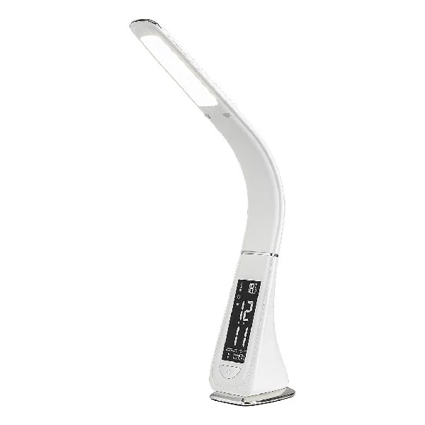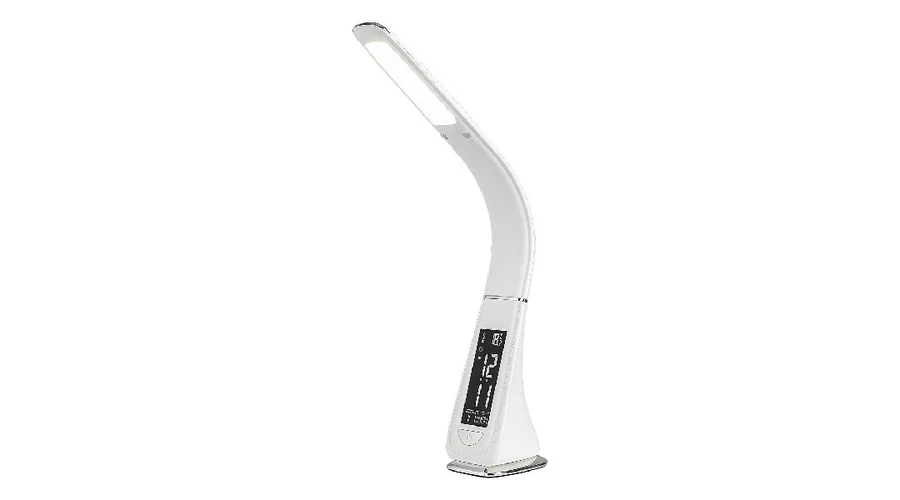 A modern stílusú Lionel asztali lámpa remek választás lehet a dolgozószobába vagy a gyerekszobába. A teljes egészében műanyagból készült modell természetes fehér fényével hatékony társ lehet a munkavégzésben, tanulásban. Digitális kijelzője kényelmes betűmérettel biztosítja a könnyű olvashatóságot, kialakításának köszönhetően pedig igazán kevés helyet foglal, így praktikus választás egy kisebb íróasztalra is. A fehér színű, hajlítható szárú modell beépített LED fényforrással rendelkezik, amelynek teljesítménye 5 W, fényereje 260 lumen, élettartama pedig 30 000 óra. A fényforrás színhőmérséklete 5000 K. A Lionel dimmelhető, azaz fényereje szabályozható, méghozzá a lámpa alsó részén elhelyezett érintőkapcsoló segítségével. A lámpa digitális kijelzője CR2032 típusú elemmel működtethető, amely a csomag részét képezi. Az asztali lámpa méretei a következők: a dísztalp szélessége 70 mm, a lámpa teljes magassága 335 mm, benyúlása 245 mm.