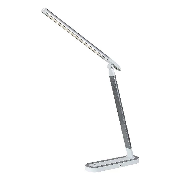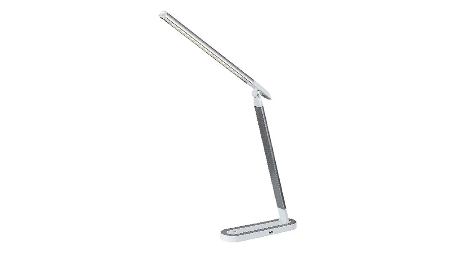 A modern stílusú Misha asztali lámpa nagyszerű választás lehet a dolgozószobába vagy a gyerekszobába. A fémből és műanyagból készült, ezüst-fehér színű modell természetes fehér fényével hatékonyan segítheti munkavégzésünket, illetve iskolás gyermekeink tanulását az esti órákban. A mozgatható lámpafejjel szerelt Misha beépített LED fényforrással rendelkezik, amelynek teljesítménye 7 W, fényereje beállítástól függően 360-400 lumen, élettartama pedig 20 000 óra. A fényforrás színhőmérséklete 4000 K. A lámpa dimmelhető, azaz fényereje változtatható, méghozzá a lámpa talprészén elhelyezett érintőkapcsoló segítségével. Ezenkívül beépített USB-töltővel is rendelkezik, amelynek segítségével mobiltelefonunkat is kényelmesen feltölthetjük munka közben. A Misha asztali lámpa magassága 400 mm, a dísztalp hossza 240 mm, szélessége 65 mm.