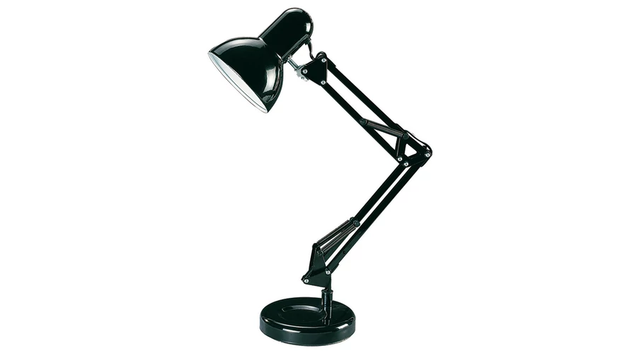 Megfelelő asztali megvilágítást biztosító asztali lámpa állítható karral és fejjel, 49 cm-es magassággal, fekete színben. Fém alapanyag, tartós kivitel, IP20-as védettség. A lámpatest E27-es foglalatú, maximum 60W teljesítményű halogén vagy energiatakarékos fényforrással használható.