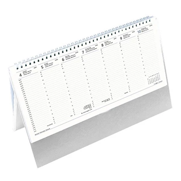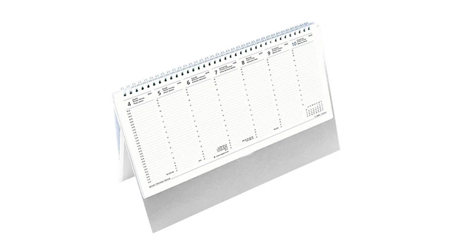 Papírtáblával készült, fehér tömbös, álló asztali naptár. Szitázással emblémázható.