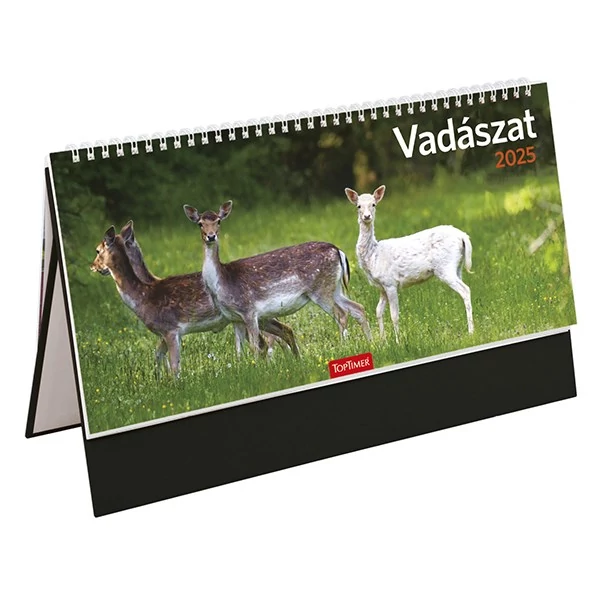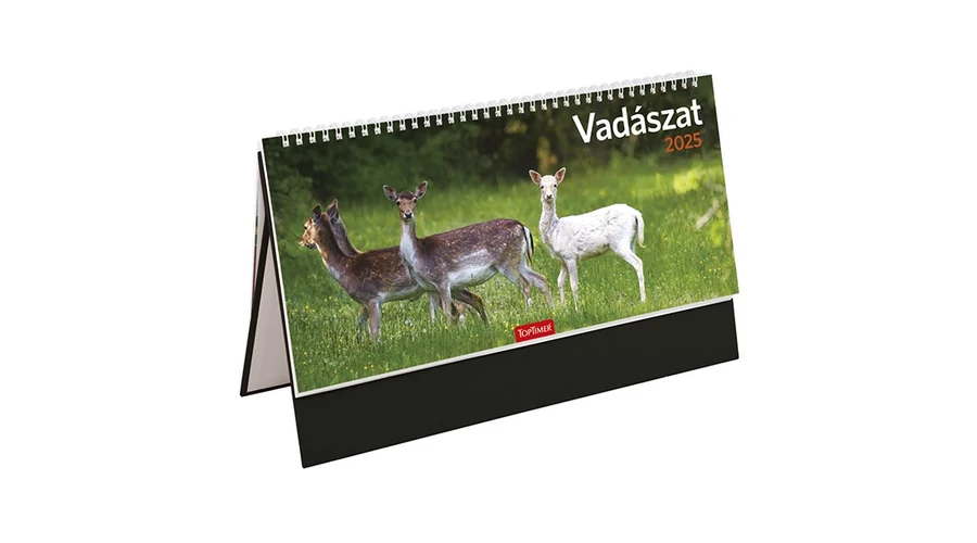 Asztali naptár képes TOPTIMER T054 álló fehér lapos Vadászat fekete 2025.