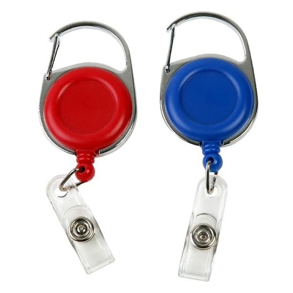 Műanyag kerek, karabineres kihúzható kártyatartó.