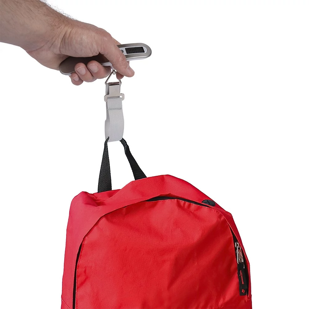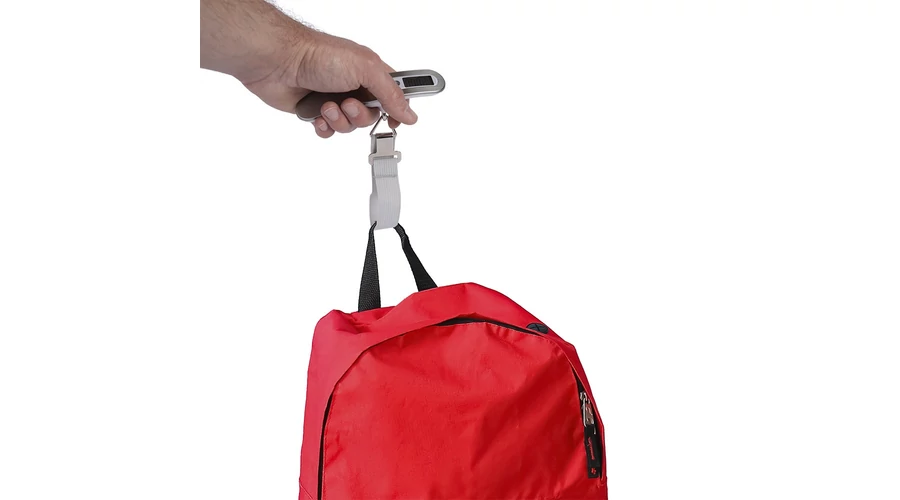 Ezüst színű bőröndmérleg.
