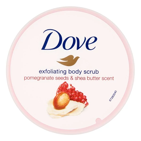 Dove bőrradír gránátalma magokat és shea vajat tartalmaz, segít eltávolítani az elhalt hámsejteket, selymesen simává tenni a bőrt. Illata valódi kényeztetést biztosít, miközben segít energiával feltölteni.