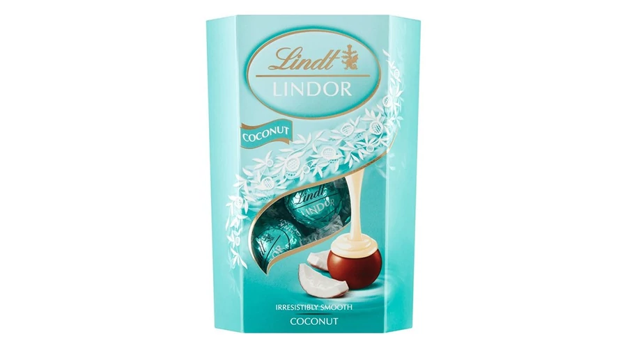 Csokoládé LINDT Lindor Coconut kókuszos fehércsokoládé golyók díszdobozban 200g