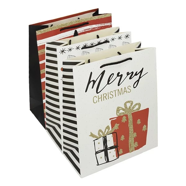 Ajándéktasak, különböző mintákkal, matt glitteres, 26 x 32 x 12 cm méretben. Vegyes mintákkal, a mintaválasztás nem lehetséges.