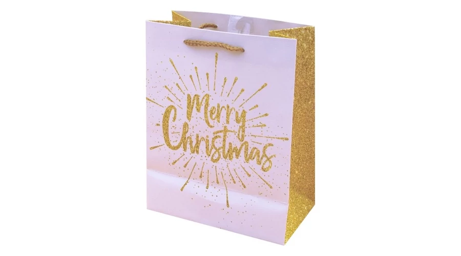 Dísztasak CREATIVE Luxury M 18x23x10 cm karácsonyi arany mintás matt glitteres zsinórfüles