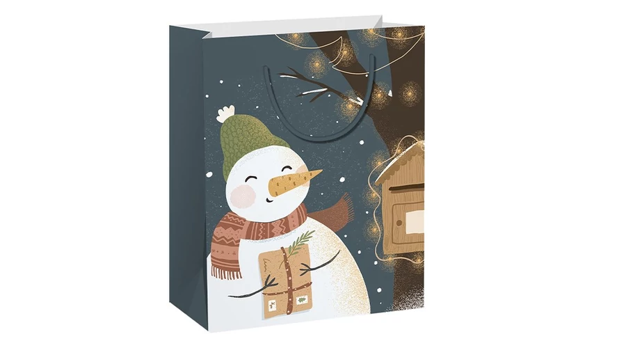 Dísztasak CREATIVE Special L 26x32x16 cm karácsonyi hóemberes színes fényes sodort füles