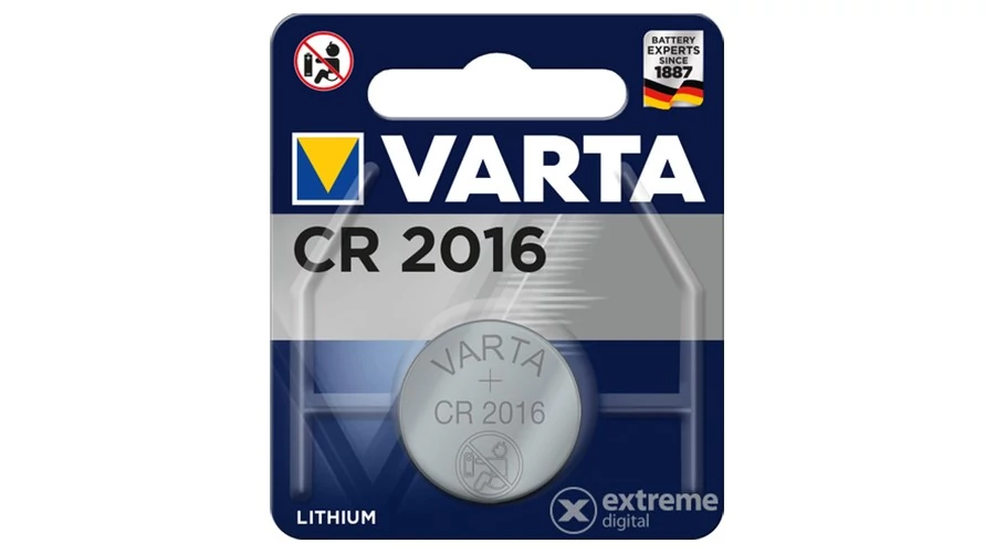 Típus - CR 2016 Feszültség (V) - 3 Rendszer - Lithium Gomb (Li/MnO2) Kapacitás (mAh) - 90 Magasság (mm) - 1.6 Átmérő (mm) - 20.0
