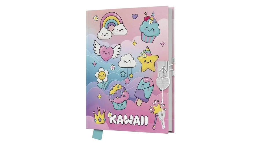 A5-ös méretű, keménytáblás, cérnafűzött emlékkönyv. Sima lapokkal, 80 lapos. Kétkulcsos szív alakú lakattal. Az emlékkönyv szalagos könyvjelzőt tartalmaz. Mérete: 14x18 cm