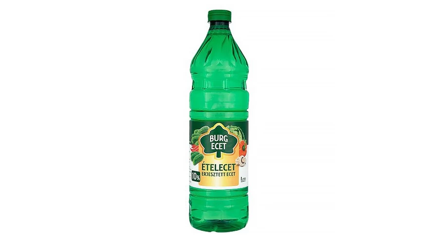 Erjesztett ételecet. 10%. Összetevők: Ivóvíz, erjesztett ecet, ecetsav: 10 g / 100 ml. Száraz, hűvös helyen tartandó.