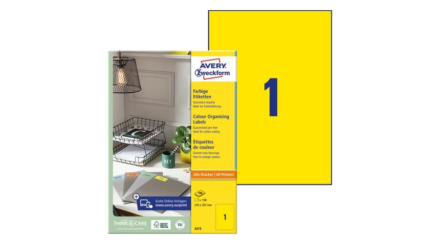 Etikett AVERY 3473 210x297 mm sárga univerzális 100 címke/doboz 100 ív/doboz
