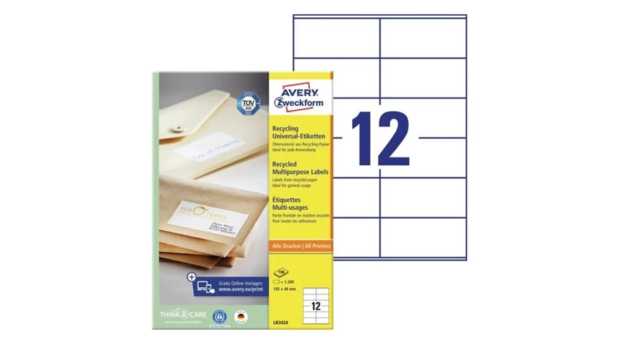 Etikett AVERY LR3424 105x48mm környezetbarát 1200 címke/doboz 100 ív/doboz