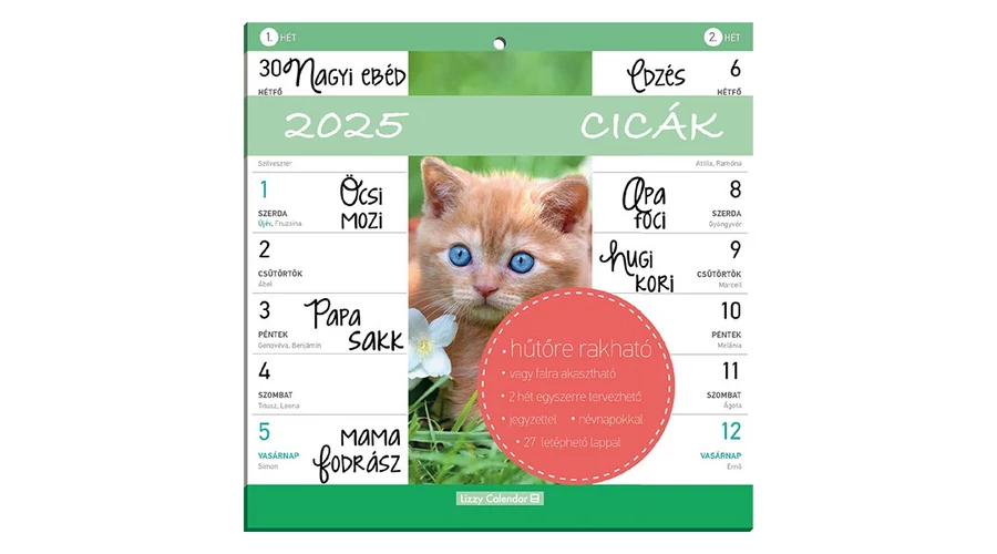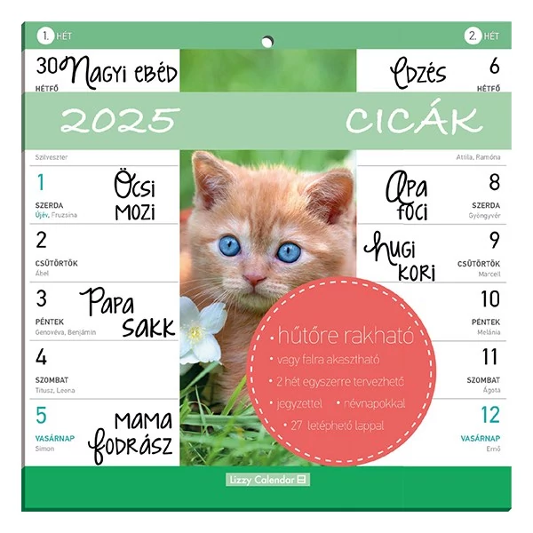 Falinaptár mágneses LIZZY CARD 220x220mm 2 hetes Cicák 2025.