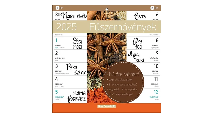 Falinaptár mágneses LIZZY CARD 220x220mm 2 hetes Fűszernövények 2025.