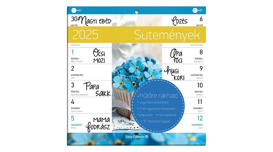 Falinaptár mágneses LIZZY CARD 220x220mm 2 hetes Sütemények 2025.
