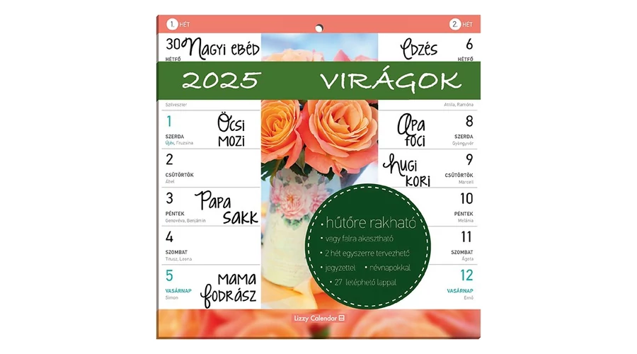 Falinaptár mágneses LIZZY CARD 220x220mm 2 hetes Virágok 2025.