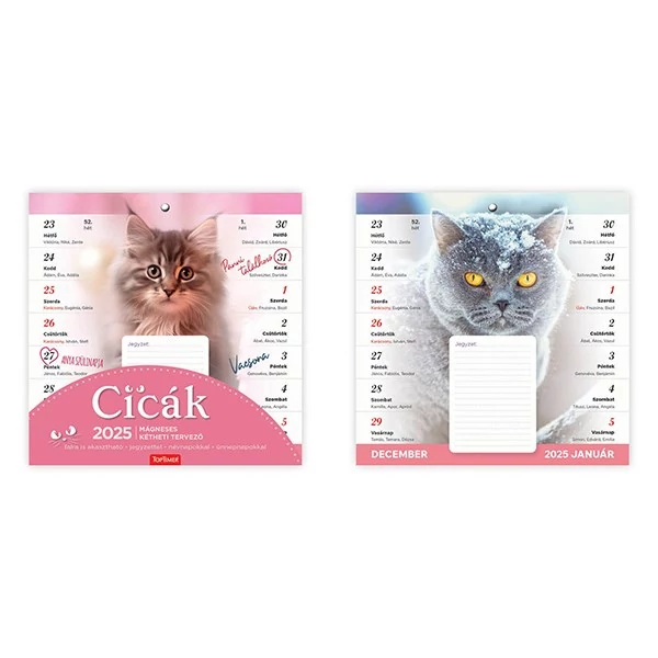 Falinaptár mágneses TOPTIMER T090 220x220mm Cicák 2025.