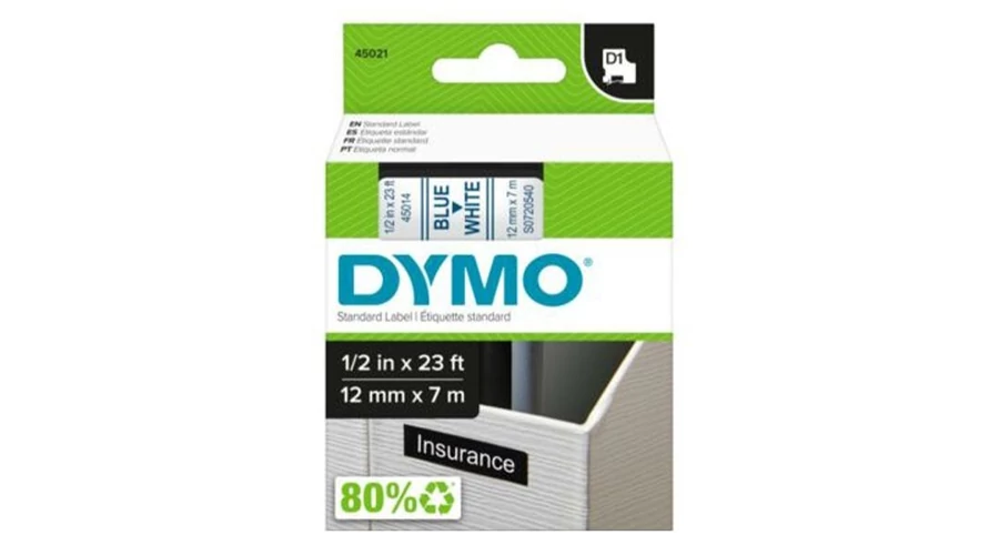 Feliratozó szalag DYMO D1 45014 12mm x 7m fehér alapon kék írásszín