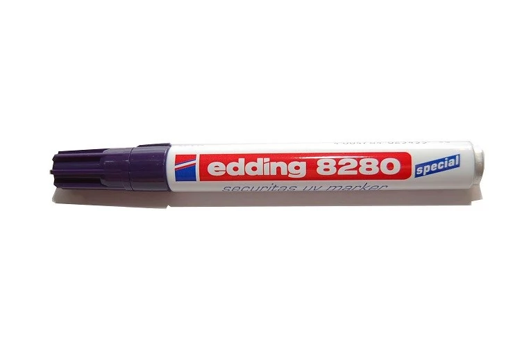 Olyan feliratok készítéséhez, amely csak ultraibolya fény alatt láthatók. Kerekített csúccsal ellátott, speciális UV festékkel töltött marker. Vonalvastagsága: 1,5-3 mm