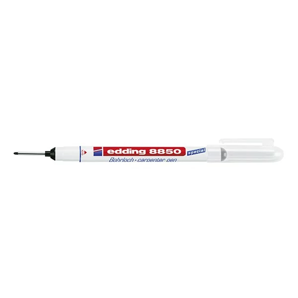 Különlegesen hosszú, finom hegyű marker, nehezen hozzáférhető helyekhez. Ideálisan alkalmas furatközéppontok bejelölésére. Vízálló csaknem minden felületen. Szinte minden száraz és portalanított felület jelölhető és feliratozható vele. Kerek heggyel. Vonalvastagság: 0,7-1 mm. Írásszín fekete.