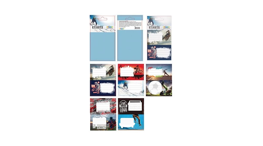 10 darabos kiszerelésű füzetcimke tinédzser fiúknak, vegyes mintákkal/ív, 5ív/csom