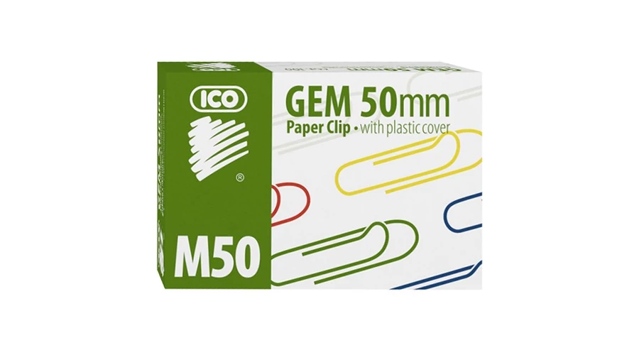 Kiváló minőségű ICO gémkapcsok, műanyag bevonattal ellátott, színes gémkapcsok. A doboz 100 darab gémkapcsot tartalmaz Mérete: 50 mm
