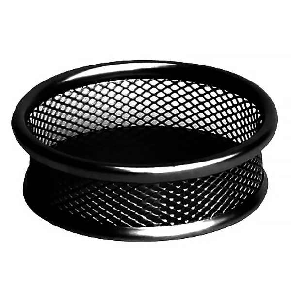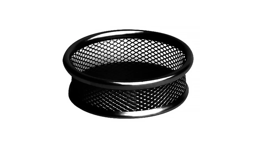 Fémhálós, fekete, kerek gémkapocs tartó. Irodai és otthoni használatra egyaránt alkalmas.