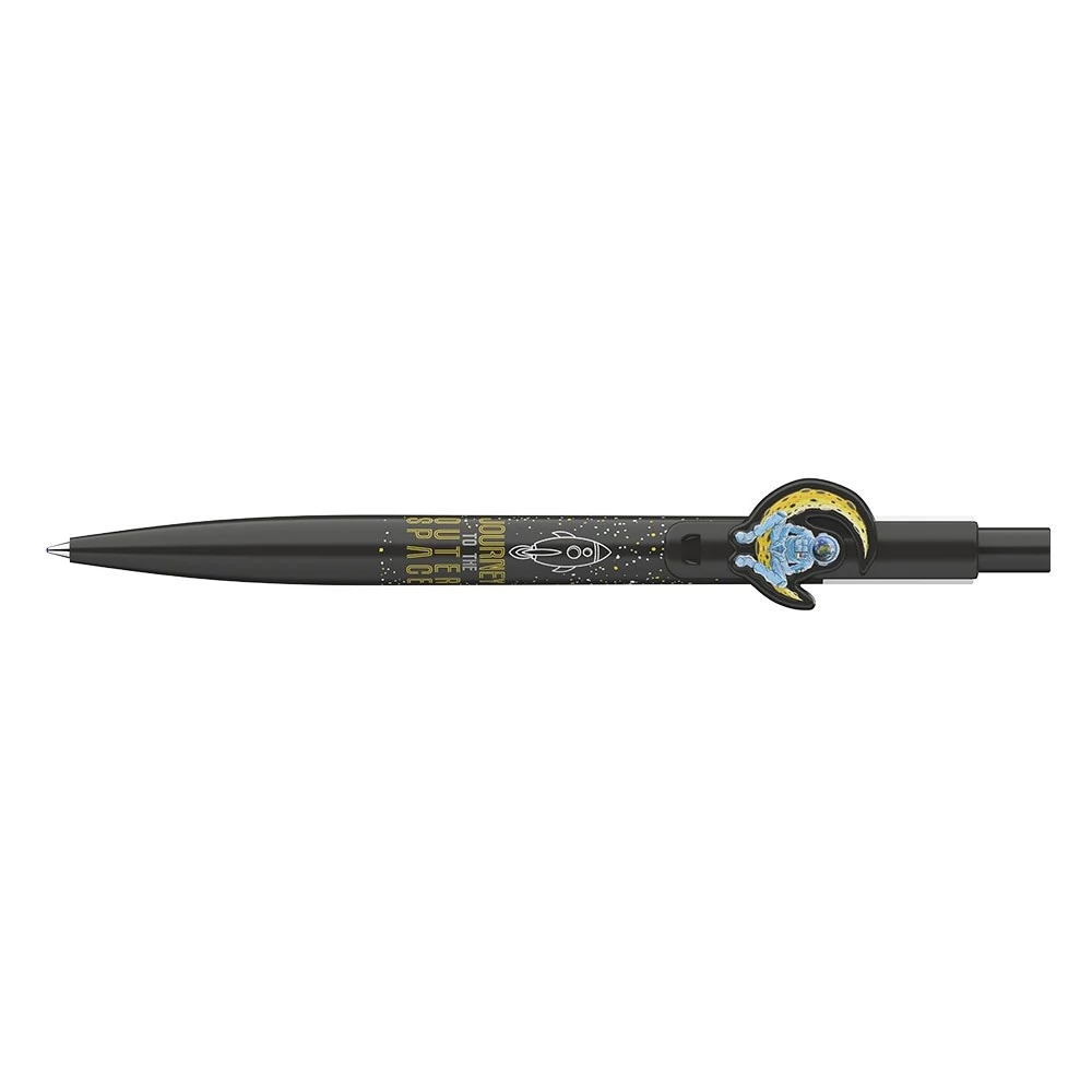 Nyomógombos mechanikával működő golyóstoll, asztronauta fomájú klipsszel. Cserélhető X-20-as kék színű golyósbetéttel. Írásvonalvastagság: 0,8 mm.