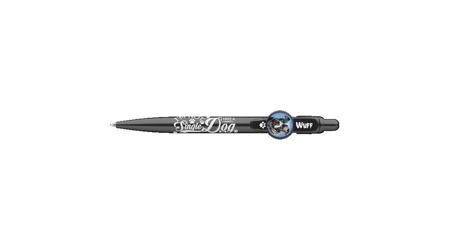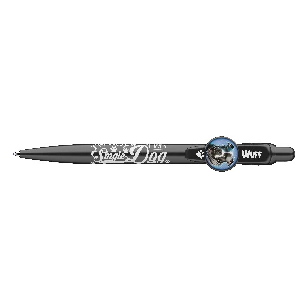 Kutyás motívumokkal díszített nyomógombos mechanikával működő golyóstoll 0,8 mm-es kék színű golyósbetéttel.