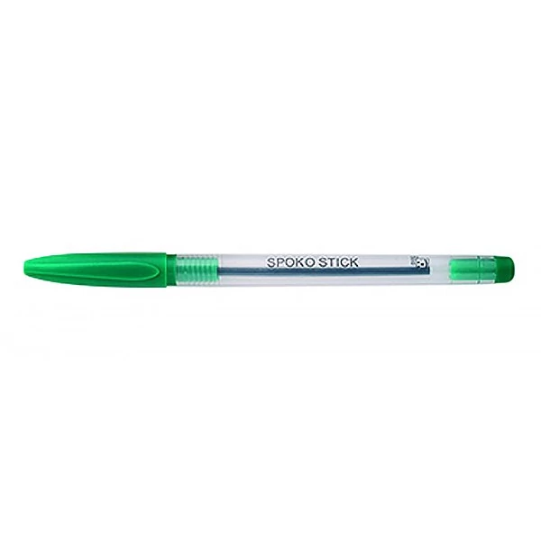 Műanyag testű eldobható golyóstoll, nemcserélhető betéttel, levehető kupakkal.
