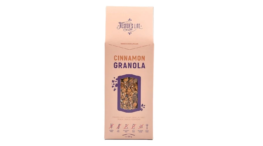 A Cinnamon granola fahéjjal fűszerezett ellenálhatatlan ropogós zabpehelyfalatokat rejt. Természetesen édes ízét a teljes datolyának köszönheti, mely a következő szintre emeli a granola fogalmát.