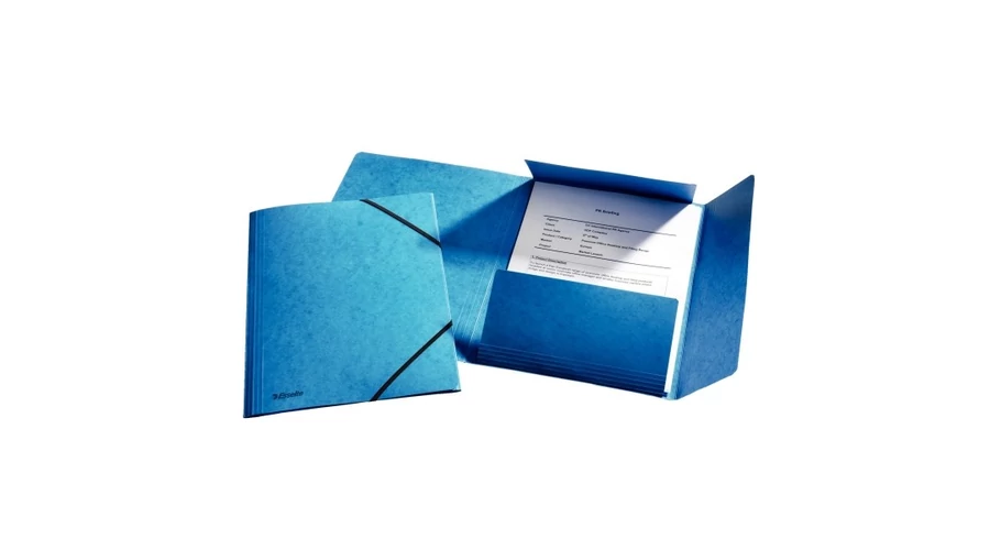 3-pólyás mappa gumiszalagos záródással, élénk színekben dokumentumok tárolásához. Gyors és egyszerű megoldás a dokumentumok rendszerezésére az irodában, irodán kívül és az iskolában. Élénk színekben a vidám munkakörnyezetért. A sarkokon található gumiszalagok megakadályozzák a dokumentumok kicsúszását. Tartós használat a vastag, erős karton alapanyagnak köszönhetően. Kiváló minőségű, 100%-ban szűz rosttartalmú, FSC® minősített karton.