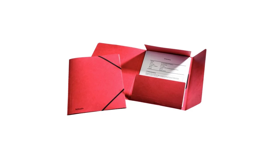 3-pólyás mappa gumiszalagos záródással, élénk színekben dokumentumok tárolásához. Gyors és egyszerű megoldás a dokumentumok rendszerezésére az irodában, irodán kívül és az iskolában. Élénk színekben a vidám munkakörnyezetért. A sarkokon található gumiszalagok megakadályozzák a dokumentumok kicsúszását. Tartós használat a vastag, erős karton alapanyagnak köszönhetően. Kiváló minőségű, 100%-ban szűz rosttartalmú, FSC® minősített karton.
