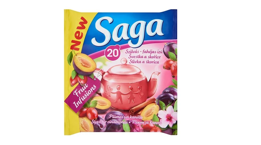 Fahéjas szilva ízű gyümölcstea. A Saga gyümölcsteák mindegyikében érezni a finom gyümölcsös ízeket. A forrázást követően megjelenik élénk színe, és intenzív gyümölcsös illat kíséretében kortyolhatjuk teánkat.