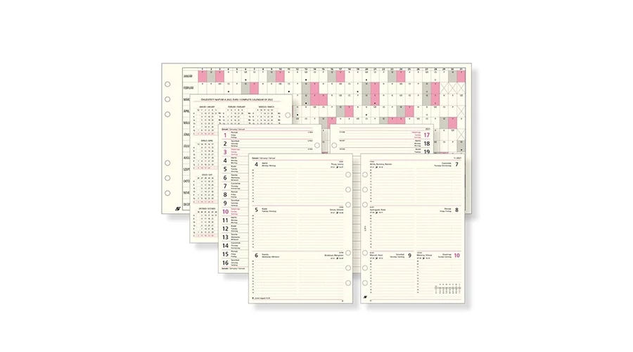 Heti beosztású betétlap csomag. 72 lap/csomag Mérete: L: 146 x 210 mm
