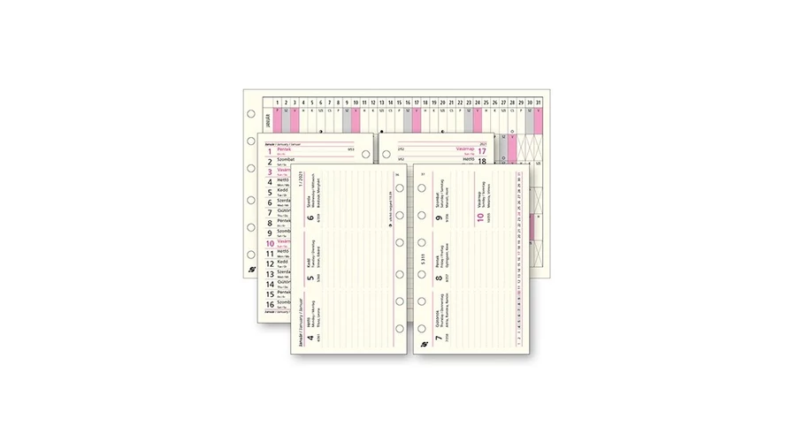 Heti beosztású, fekvő betétlap csomag. 72 lap/csomag Mérete: S: 78 x 128 mm