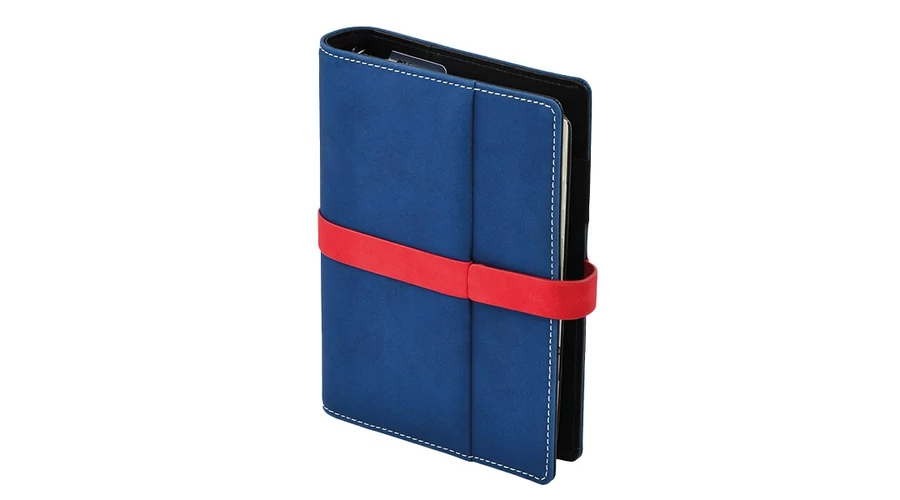 Gyűrűs kalendárium SATURNUS M225 chamois lapos kék-piros műbőr 2025.