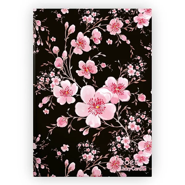 Határidőnapló LIZZY CARD Pink Black B/6 napi keménytáblás 2025.