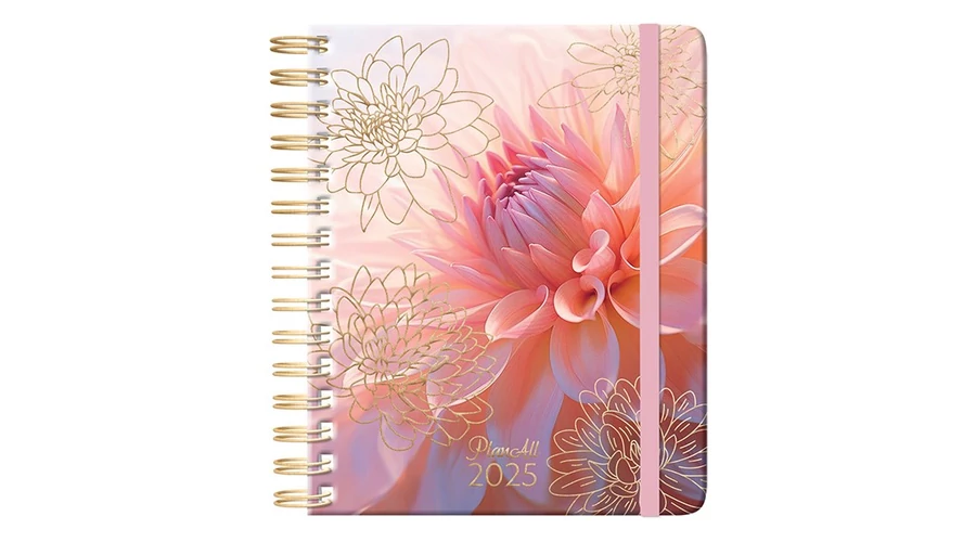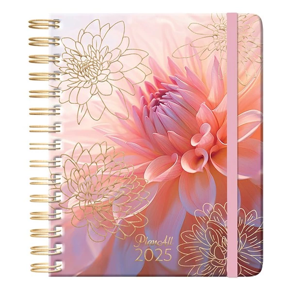 Határidőnapló PLANALL Midi Peach Art B/6 heti spirálos keményfedelű gumis 2025.