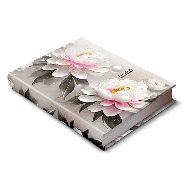Határidőnapló REALSYSTEM Librobello "Hölgyeknek" B/6 napi fehér lapos 3D lakk+ élfestés Babarózsa 2025.