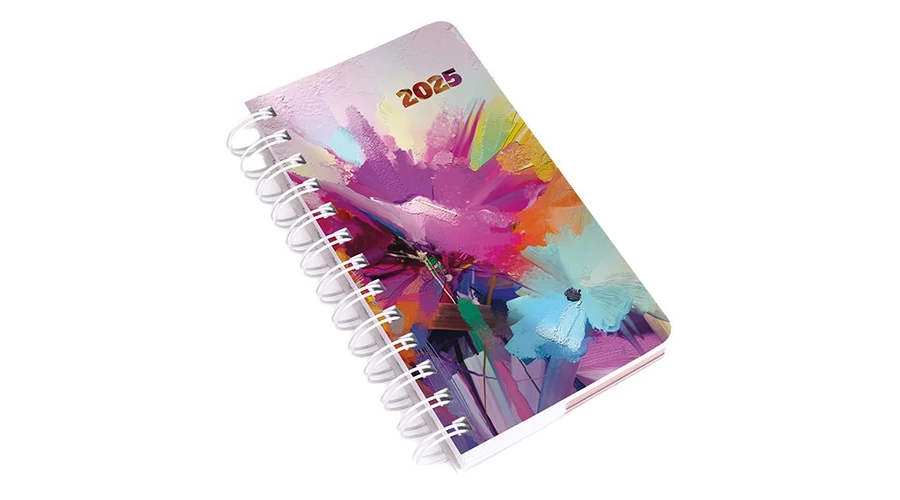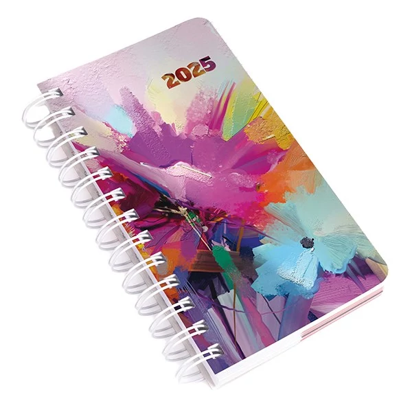 Határidőnapló REALSYSTEM SP5 spirál A/6 napi fehér lapos akvarell 2025.