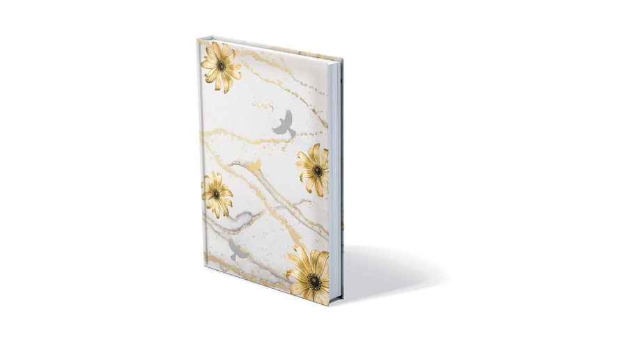 Határidőnapló REALSYSTEM Picture A/5 napi fehér lapos Virágminta 2025.