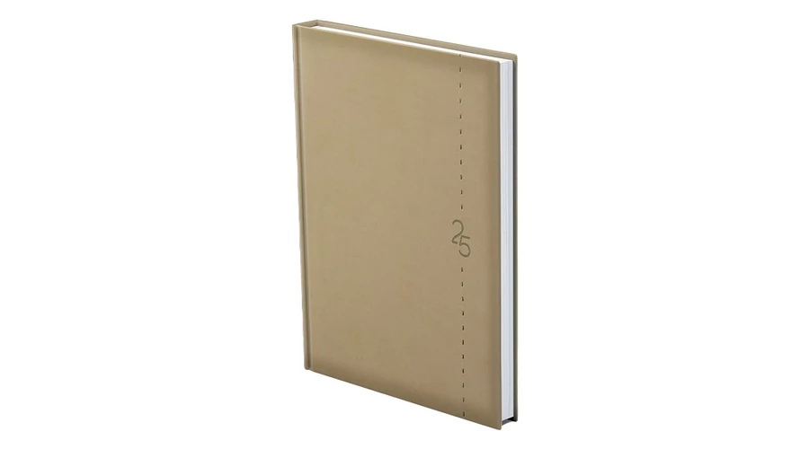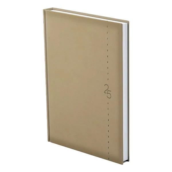 Matt, bőrhatású, hőre színeződő műbőr bevonóval, függőleges dísztűzéssel készült, fehér tömbös naptár, jelzőszalaggal és sarokperforációval (kivéve zsebnaptár). Vaknyomással és lézergravírozással emblémázható.