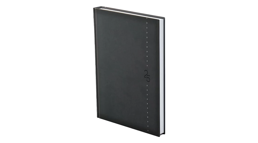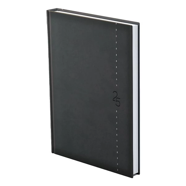 Matt, bőrhatású, hőre színeződő műbőr bevonóval, függőleges dísztűzéssel készült, fehér tömbös naptár, jelzőszalaggal és sarokperforációval (kivéve zsebnaptár). Vaknyomással és lézergravírozással emblémázható.