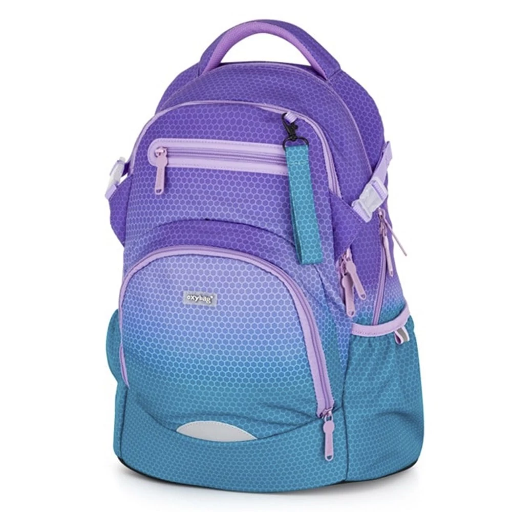 Az OXY Ombre sorozat iskolai hátizsákja ideális választás 3. osztálytól. Anatómiailag formázott hátrésszel, párnázott vállpántokkal és állítható mellkaspánttal rendelkezik. A masszív alj megakadályozza, hogy a táska önmagában felboruljon. Két tágas rekeszben elfér minden szükséges iskolai felszerelés. Az oldalzsebek rugalmas pánttal készültek, így kulacsnak is tökéletesek. Az elülső zsebben egy kisebb uzsonna is kényelmesen elrejthető. Számos fényvisszaverő elemmel a biztonságosabb közlekedésért. 136 cm testmagasságtól ajánlott. Űrtartalom: 28 l, teherbírás: 8 kg.