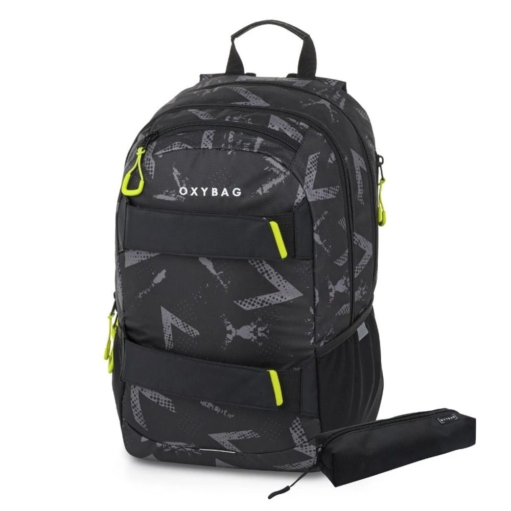 Kiváló szett hátizsákkal és diák tolltartóval. Az OXY SPORT sorozat iskolai és szabadidős hátizsákja ergonomikusan formázott hátrésszel, állítható, párnázott vállpántokkal és mellkaspánttal rendelkezik, így kényelmes viseletet biztosít. Két fő rekeszből és egy kisebb, elülső zsebből áll, erős cipzárakkal és praktikus húzófülekkel. Belül megerősített laptopzseb, kulcskarabiner, kisebb zseb apróságoknak, valamint rejtett zseb található a hátrésznél. Oldalzseb kulacsnak és több fényvisszaverő elem a jobb láthatóságért. Ideális másodikos iskolásoknak, illetve diákoknak és felnőtteknek szabadidős használatra. Űrtartalom: 24 l, teherbírás: 8 kg.